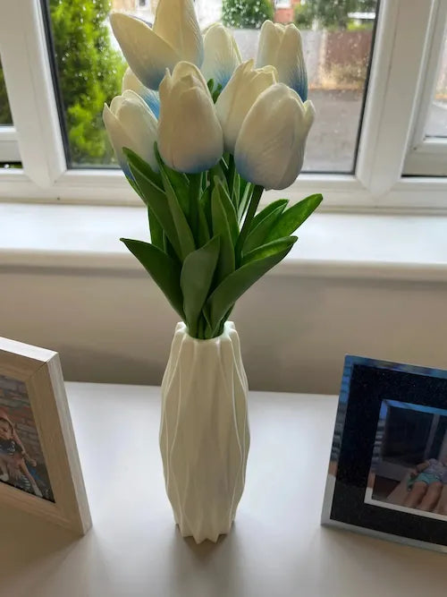 "OMG, diese Vase ist ein echter Hingucker! Ich habe sie für mein Wohnzimmer gekauft und sie ist soooo hübsch😍. Das Diamantmuster ist einfach wunderschön und sie fühlt sich super robust an. Ich liebe es, wie sie sowohl mit echten als auch mit künstlichen Blumen passt. Auch die glatten Kanten sind sicher👍. Jetzt hole ich mir noch mehr für mein Schlafzimmer!"